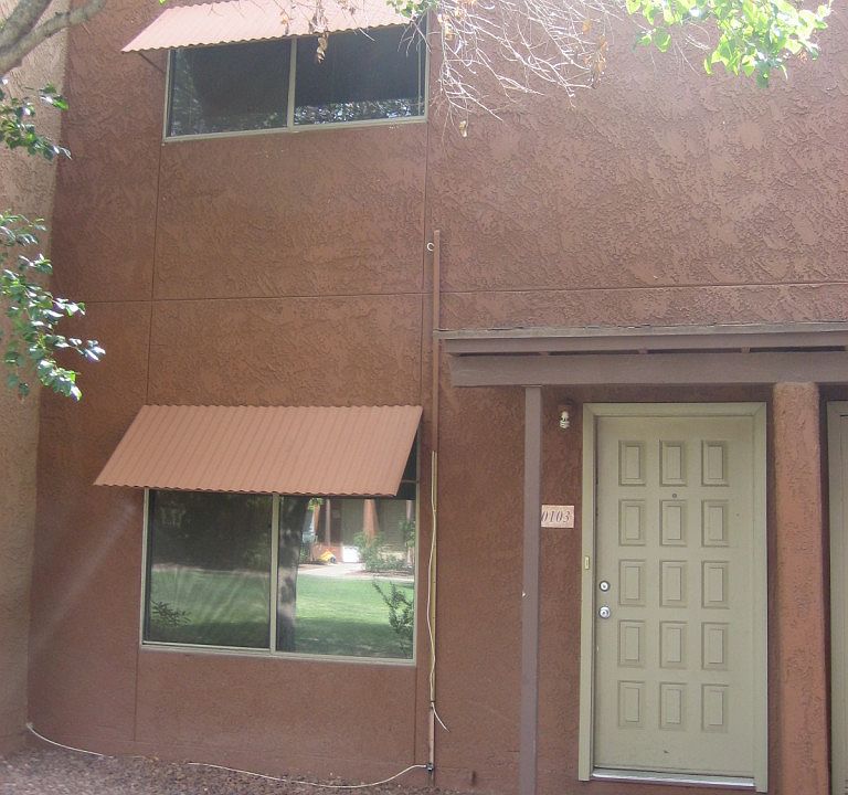 Bank owned condo located in a convenient central Tucson location in a gated complex, this two bedroom, one and one half bath condo with one covered parking space is located to the back of the complex away from traffic noise and other disturbances. First floor features a living room, half bath, dining area nad kitchen. The second floor contains two large bedrooms and full bath. A small enclosed yard area backs to one of the parking areas. Commmunity pool. On site laundry facilities. Monthly HOA fee covers water, sewer, trash collection, roof and exterior paint. Sold ''AS IS''.