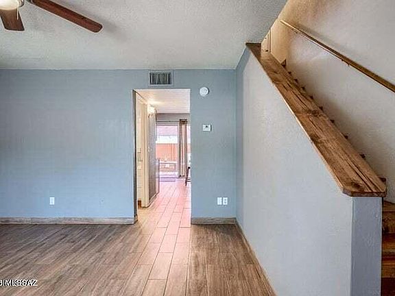 Charming 2 bed, 1.5 bath condo in Tucson, located near the U of A, offering an easy downtown commute. The bedrooms are situated upstairs, along with a full bath. On the main floor, enjoy the dining area and cozy kitchen with stainless steel appliances, new garbage disposal & dishwasher. A large pantry & storage area is located off the dining room, and a glass sliding door leads to the quaint, fenced-in rear patio. Living room is perfect for unwinding, and there's a half bath on the main floor for convenience. Full size washer/dryer on the 2nd floor. Stay comfortable year-round with the new central HVAC, new outlets with USB ports & single solar unit that assists with electricity costs. Great opportunity, whether you're a first-time home buyer or investor. Only 2 doors from the parking lot.