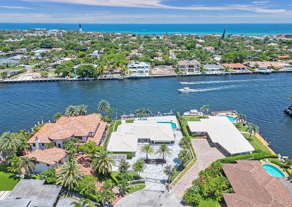A true boater’s paradise, where luxury living meets waterfront bliss! This stunning gated estate nestled on an expansive 14,367 sq. ft lot with 100 ft of pristine Intracoastal frontage, in a no-wake zone, minutes from Hillsboro Inlet. Located on a cul-de-sac, this updated home, built on pilings, boasts a motor court/circular driveway, new pavers, a 2-bay garage, and a whole-home generator. Additional highlights include a chef’s kitchen, an office/den, a smart home system, new ACs and appliances. Step outside to enjoy a new composite dock complete with 2 boat lifts and a jet ski lift, a sparkling new saltwater heated pool and a covered lanai, perfect for entertaining. With its prime location and unparalleled amenities, this gem is a must-see for those seeking the epitome of coastal living.