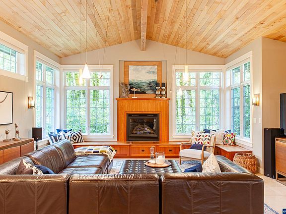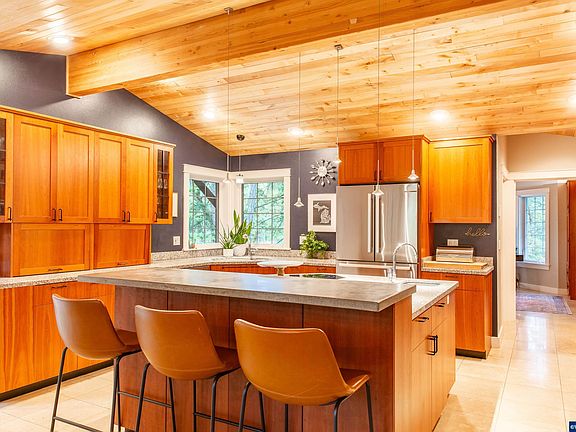 Welcome home to your custom built sanctuary! Top of line finishes from floor to ceiling, from the marble tile floors to the vaulted wood slated ceilings. Sitting above the neighbors, & backs up to green space the walls of windows abound. Gorgeous cherry hardwood built-ins in the kitchen and living room, expansive island with high grade appliances. Private office/2nd bedroom Enjoy the attached greenhouse/studio, downstairs bonus rm/3rd bd, 2car garage w/ shop space. Single story living meets everyday luxury.