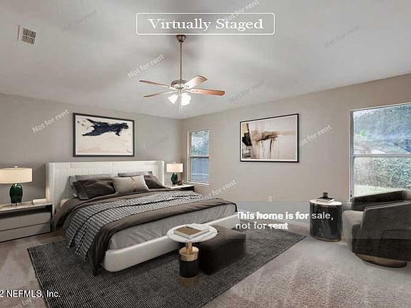 Fantastic home in sought after Jacksonville location. Fully equipped eat-in kitchen includes ample cabinets, center island, breakfast bar and a generous counter space. Step inside this beautiful interior with neutral floors, plenty of natural light and neutral palette. The primary bedroom features a spacious closet and a private bathroom with dual sinks. Relax with your favorite drink in the fenced in backyard with lush grass. Hurry, this won't last long!