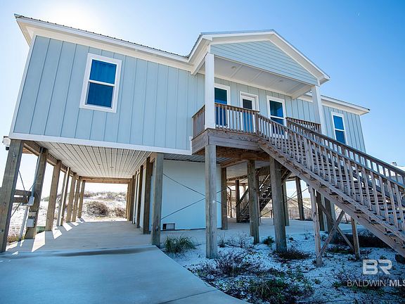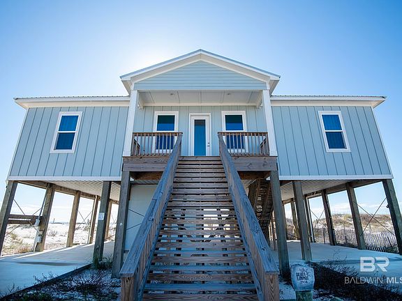 Experience coastal living at its finest in this stunning 2022-built beachfront home in Fort Morgan. With 2,079 square feet of thoughtfully designed space, this 4-bedroom, 4.5-bath property offers modern elegance and unparalleled access to the Gulf of Mexico. Two of the bedrooms feature breathtaking Gulf views with direct access to a private balcony, creating the perfect retreat for relaxation. Each bedroom includes its own en-suite bath, providing ultimate privacy and convenience. The home boasts soaring 12’ ceilings throughout, with a vaulted ceiling in the great room that enhances the sense of space and light. The property features both a screened-in porch and an open balcony, providing versatile outdoor spaces to enjoy the sea breeze. From the front of the house, take in stunning views of Mobile Bay, offering a unique perspective of the coastal beauty. A private boardwalk leads directly to the pristine beach, ensuring effortless enjoyment of the shoreline. Built to Gold Fortified standards and equipped with impact-resistant windows, this home provides both luxury and peace of mind. Having never been in a rental program, it is impeccably maintained and move-in ready. However, for those seeking an investment property, it presents a strong rental opportunity in a highly desirable beachfront location. Whether you're looking for a serene getaway or a prime vacation rental, this beachfront gem is a rare find. Don’t miss your chance to own a piece of paradise! Buyer to verify all information during due diligence.