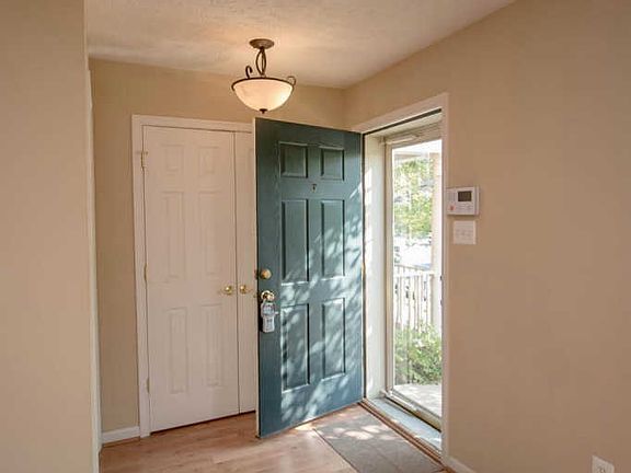 Beautiful Brick-Front Townhome with Bow window in elegant, tree-lined neighborhood will impress with gorgeous laminate through first floor, brand new carpet in 3 Bedrooms upstairs, and many recently updated appliances. Vaulted ceilings in Bedrooms, Deck on rear, outdoor access to Basement ready to be finished! All appliances convey. Community has great Tot Lot & Walking Trails too!