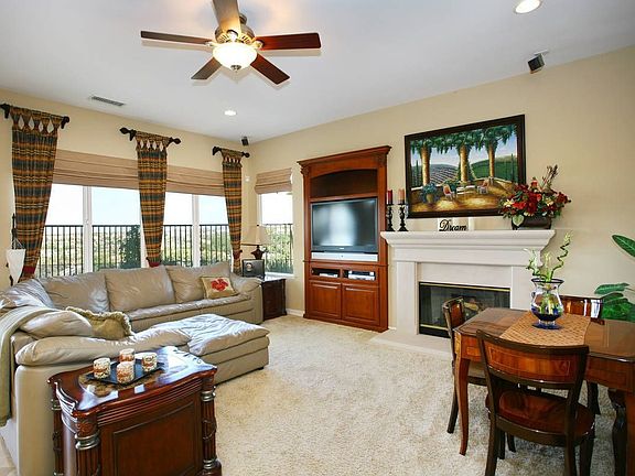 Stunning single loaded street at the end of a culdesac with privacy and incredible views to Big Bear Mountain! Highly upgraded with travertine and wood floors. Rotunda at entry with 23' ceilings and stunning wrought iron circular staircase. Curved double wood doors with wrought iron and glass opening to downstairs office with fireplace. All 4 bedrooms are en-suite (one downstairs). Lanai with travertine, privacy and views in every direction. Entertainer's Kitchen opens to the family room & breakfast area. Kitchen upgrades include stainless 6 burner KitchenAid cooktop, Bosche dishwasher, built-in refrigerator, instant hot, oversized double sinks with commercial grade faucet, granite countertop island and Mother of Pearl backsplash. Walk in pantry, tons of cabinet space and double ovens complete this gourmet kitchen! Upstairs you'll find the perfect family layout with large bonus room and kid's computer area. All secondary bedrooms have walk in custom closets. Master bedroom is spacious with sitting area, views, plenty of linen closets, large walk in custom closet and separate tub and shower. This home is loaded with windows to capture the beautiful views and sunshine.