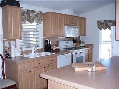 Palm Harbor 2006. You get all this for a great price! 2/2 and office. Electric whell chair ramp, over-sized shed, skylights, master has shower and garden tub. Outlets and switches for ceiling fans. Large kitchen with gas stove, refrigerator, lazy susan under cabinets, pantry with sliders, front covered porch with trek deck. Hardiboard (fireproof) siding.
