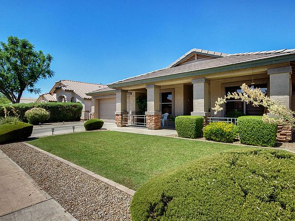 Situated on an Interior Lot within Walking Distance to Community Park with Front Porch & Stone Accetns, Popular Brady Floor Plan from Continental Featuring 3 Bedrooms + Den, Separate Living, Family, & Formal Dining Rooms, Vaulted Ceilings & Plant Shelves, 2'' Blinds, Accent Paint, Lots of 16'' Tile & Laminate Wood Flooring, Eat-In Kitchen with Island/Breakfast Bar, Walk-In Pantry, Stainless Steel Gas Range, Built-In Microwave, Plumbed for Gas Dryer in Laundry Room, Vaulted Ceilings and Separate Exit to Patio from Master Bedroom, Walk-In Closet in Master Bath, Covered Patio, Grassy Yard, Pebble-Tec Pool with Rock Waterfall, Sunscreens, New Trane AC Unit in 2012. Elementary School in Subdivision, Gilbert Schools/Mesa Taxes. Close to Lots of Shopping and Freeways