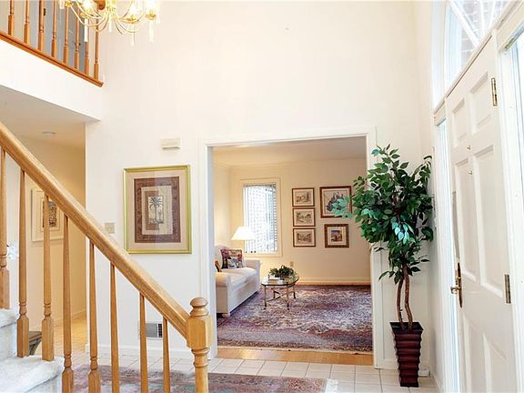 What a perfect setting for this lovingly maintained town home in sought after Millbrook Farms. Original owners picked the lot and modified floor plan to it's fullest potential. Fabulous layout features a huge first floor master suite with walk in closet and sumptuous bath with jetted tub and newer tiled shower. Two story family room with fireplace and a wall of windows overlooks backyard with patio and woods creating a serene view. Updated eat-in kitchen with granite countertops, center island w/ electric cooktop, new built-in oven/microwave and lots of storage. Formal dining room with built in server can accommodate large gatherings, along with living room, and guest powder room complete the first floor perfect for entertaining or informal gatherings. Upstairs you will find three spacious bedrooms, den, and full bath. Neutral throughout you can move right in! Plenty of storage, attached two car garage, convenient location.