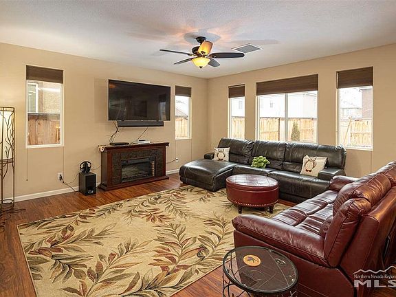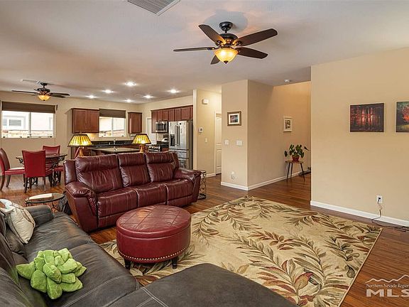 Spectacular Nevada Views out Every Window! The Sierra Nevada Mountains sit to the SW & The Virginia Mountain Range to the East is often dotted with Wild Horses. A Quiet Gated Neighborhood boasts unparalleled Amenities: Pool, State of the Art Gym, Pickle Ball courts, Play ground, Many Natural and Man-made walking paths. You'll feel Safe with hourly Security patrols of the Neighborhood. The home is immaculate and has every upgrade; Granite Counter Tops, Finished Garage, and Zero maintenance landscaping.