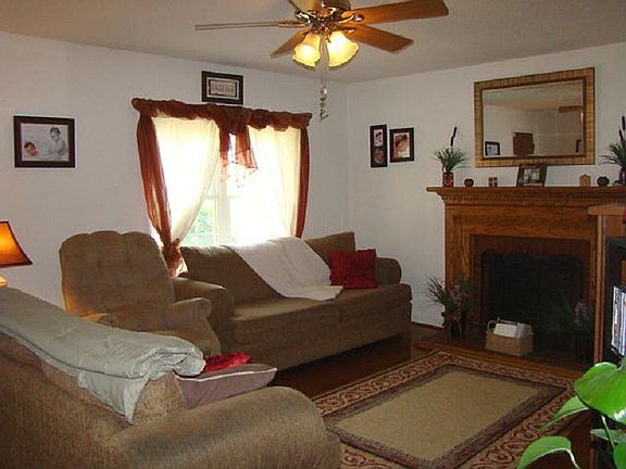 Lots of Country Charm! Spacious 3 BR, 2 bath home beautifully renovated, hardwood floors, updated kitchen with new cabinets, appliances including smooth top range, built-in microwave, dishwasher & refrigerator, decorative FP surround, built-in pantry & under cabinet lighting. Updated baths, large office/mud room has French doors to deck. Wired 2 bay garage with foundation, storage building w/shed. New roof on house & building 2010. Covered front porch, nice country setting!