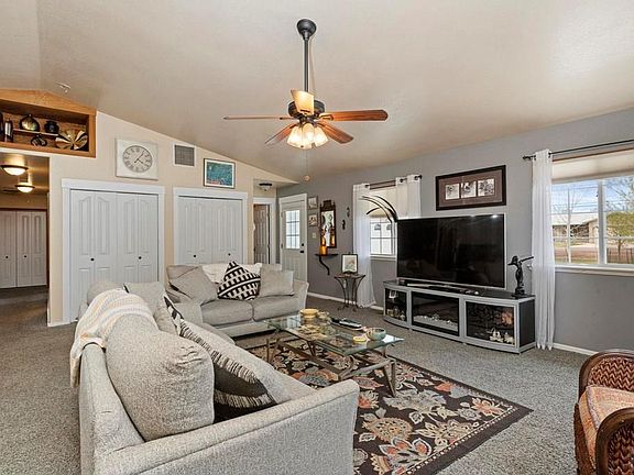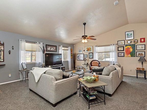 This immaculate home offers an open floor plan with vaulted ceilings. Light shines throughout this home! Very nice upgrades and meticulous care is evident in this one. The cheerful sunroom steps right out to a patio garden area for your enjoyment. This 1/2 acres lot is wide open and easily accessible for RV parking and/or toy storage. It comes with a 1/4 water (irrigation) share of the Oil Creek Irrigation--BONUS! The oversized concrete driveway offers turn around and vehicle storage. The landscaping is very nice with mature shade and fruit trees. Close and convenient to shopping and medical, yet out just enough distance for privacy!