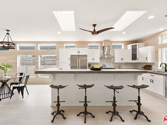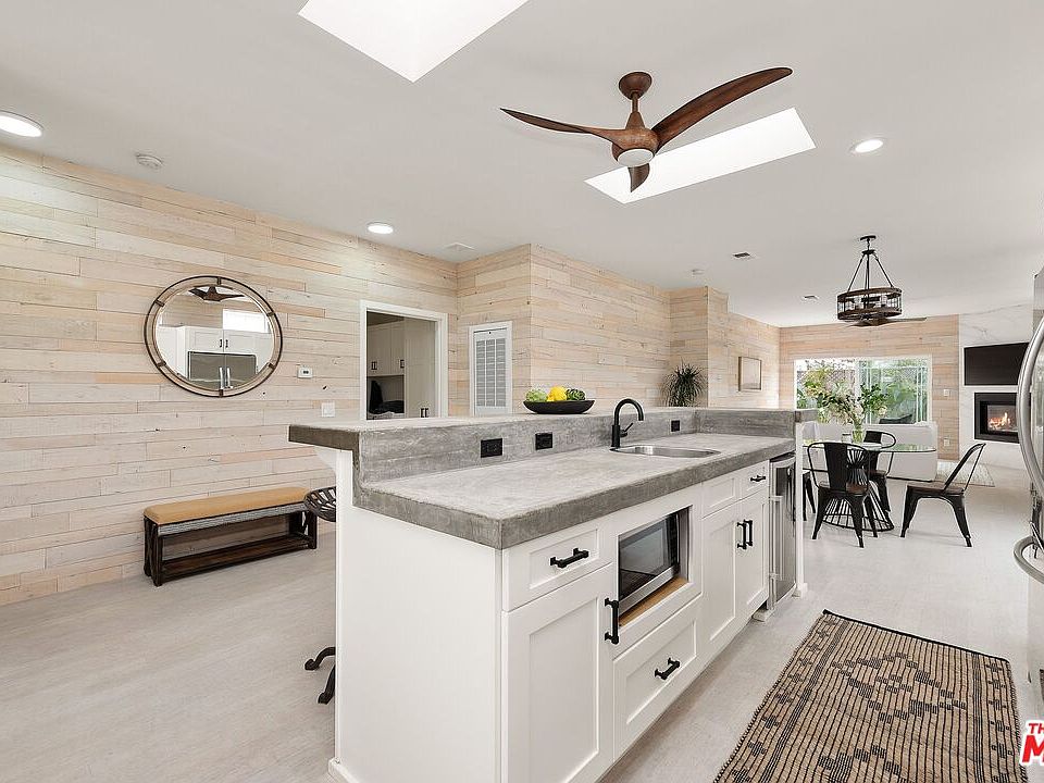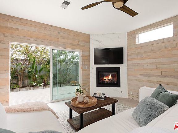 Welcome to your coastal luxury retreat! This recently renovated 3-bedroom, 2-bathroom, 1695 square foot home is ready to move right in. Step inside and experience the modern, chic beach vibe with high ceilings, wood-paneled walls, and bleached wood floors. The kitchen was professionally designed and is perfect for entertaining with custom concrete countertops, dual sinks, and ample cabinet space. The spacious primary bedroom features a walk-in closet and a large sliding door leading to a private backyard space. Stunning en-suite bathroom with a double sink, elegant fixtures, soaking tub and tiled walk-in shower. A cozy living room complete with a fireplace and sliding door that leads to the serene patio and backyard oasis, boasting mature fruit trees and garden area. This home is adorned with top-of-the-line fixtures, ceiling fans, and built-ins throughout. The other two bedrooms are generously sized, offering closets and abundant natural light. Additionally, the home includes a laundry room and side-by-side parking. Situated on a highly desirable street in close proximity to guest parking, basketball and tennis court. This coastal haven is ready for you to make it your own. The seller will even include the furnishings and the 2016 Moke vehicle. Pack your bags and start living the Malibu lifestyle today! This home has a low space rent of only $2,621 to the new buyer. The community amenities are extensive and include; a community pool, spa, sauna, tennis & basketball court, playground, dog run, clubhouse, and billiards room. The community is also guarded 24 hours a day, ensuring safety and peace of mind. Only a short walk, bike or golf cart to the local schools, shopping center and Zuma beach.