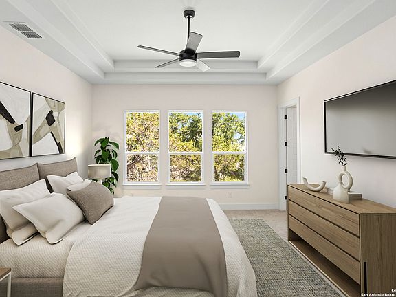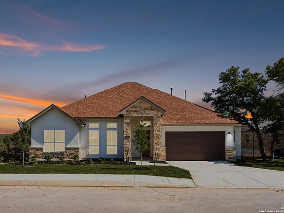 Stunning single-story 4-bed, 3.5-bath home in the coveted Elkhorn Ridge gated community in Boerne, Texas. This 2676 square-foot residence features a cozy fireplace, a two-car garage, a covered porch, and a patio for outdoor enjoyment on a beautiful lot. One bedroom boasts an en-suite bathroom and walk-in closets, while all rooms exude comfort and style. The master bedroom is a sanctuary, offering a 5-piece en-suite with a luxurious soaking tub, dual vanities, and a spacious walk-in closet. Experience upscale living in this beautiful home nestled in a serene community.