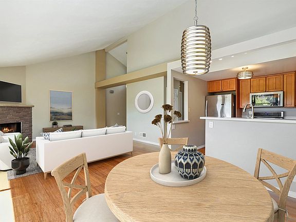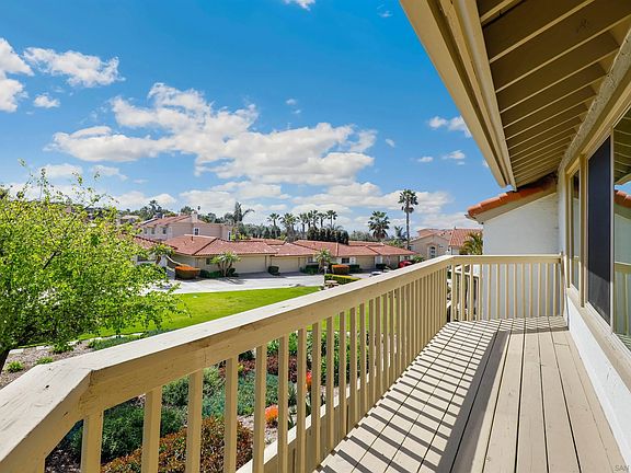 Welcome to the epitome of coastal living at La Costa Meadows in Carlsbad, where this rare ocean view townhome awaits you! Situated in a private and tranquil location, this residence is a true gem, offering a host of newly added features that elevate its elegance and functionality. Step inside to discover the newly installed bamboo plank flooring, dual pane windows, and a kitchen adorned with white quartz countertops, stainless steel appliances, a farmhouse sink, and a heater. The vaulted ceilings create an airy atmosphere, opening up to the dining and living room where a cozy stacked stone fireplace adds warmth and charm. Indulge in seamless indoor/outdoor living as you step onto the private deck, perfectly designed for dining alfresco, relaxation, or entertaining while soaking in breathtaking ocean views. The open concept floor plan enhances the sense of space, with the kitchen overlooking the dining and living areas, creating a perfect flow for daily living. Both bedrooms are generously sized, each boasting its own en-suite bathroom featuring floating stone counters. One of the bathrooms showcases a travertine shower surround, adding a touch of luxury to your daily routine. The convenience of indoor laundry and an attached 2-car garage makes everyday living a breeze. All windows and sliding doors were replaced in 2021 with dual panes, screens and high quality blinds.