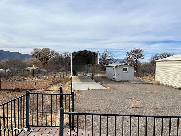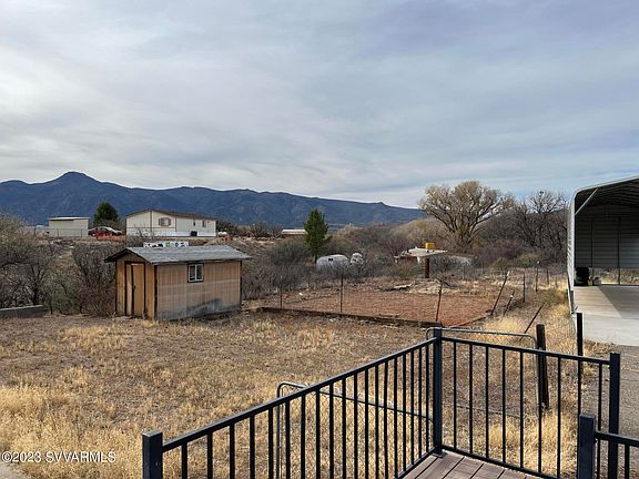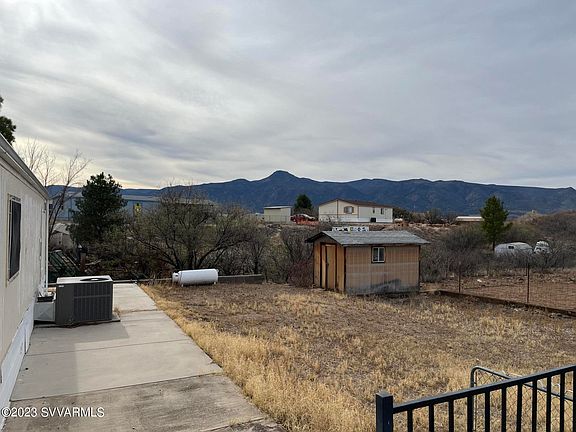 Nice mountain views, quiet area, not too far from town, close to forest service, huge lot (.70acre), cul-de-sac location, 22x22 garage, big RV carport w/concrete pad, rear asphalt parking area and turnaround, front open deck, rear open deck w/ramp, large concrete rear patio, 2 storage sheds, automatic driveway gate, HVAC unit (2019), new water heater 12/23, rear yard Fenced, 1987 Singlewide, block stemwall, 2 bedroom, 1 3/4 baths, cathedral ceiling, split bedroom floor plan, propane gas kitchen stove and water heater, wood burning stove, laundry room, newer windows, sunscreens, freezer(in garage), 1000 gallon septic, Verde Lakes Water, No HOA Dues or Association, city maintained paved road, RV/Boat/Trailer parking okay, needs work, has property/home sold as is