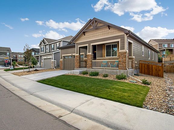 LOW MAINTENANCE LIVING WITH 3,583 FINISHED SQ FT! Gorgeous ranch style home in The Meadows. Don't wait for new construction, this home is only 18 months old and has been impeccably maintained. Spacious open concept layout w/ 9' ceilings and tons of finished sq ft! Beautiful laminate floors and 8' doors. Bright kitchen features Quartz counters, stainless steel appliances, double ovens and a large island w/ breakfast bar - open to the family room. Main floor bonus room w/ French doors can be used as an office or 5th bedroom w/ addition of an armoire. Master retreat boasts a 5 piece en suite bath and a walk-in closet. FINISHED BASEMENT IS HUGE! The high ceilings make it extremely inviting w/ a large living and rec room area, bedroom, and bathroom. Fabulous park just steps away! Walk to Aspenview Academy and site for new Castle Rock park. Patio is great for entertaining, w/ low maintenance landscaping to give you low water bills, and more time to enjoy Colorado's great outdoors!