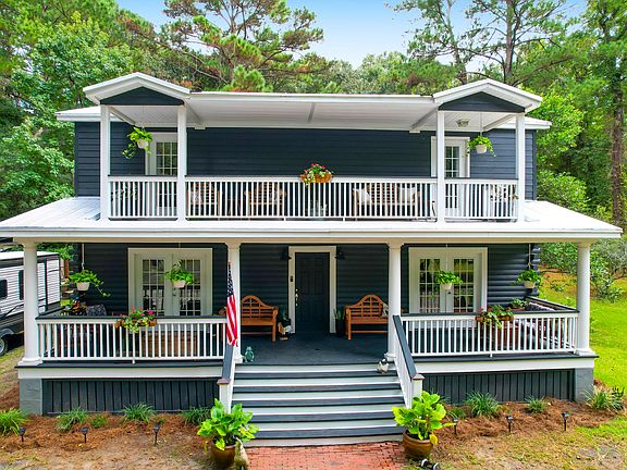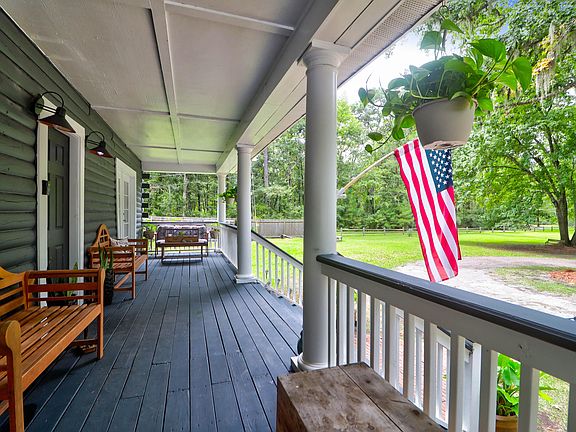 Welcome to 2951 Murraywood Rd. on Johns Island, where the best of country living meets modern convenience in a spectacular setting! This exquisite home, with both log and cement board siding and a standing seem metal roof, is nestled on a lush 1.9-acre lot and has 5 bedrooms, 3.5 baths, and 2,494 sq ft of thoughtfully updated living space. From the moment you arrive, you'll be captivated by the home's picturesque appeal and the endless opportunities for outdoor enjoyment. Imagine starting your day with fresh eggs from your own chickens, who live comfortably in custom-made backyard chicken coops. Whether you're tending to the raised vegetable beds, penned animal areas, or utilizing the 600-gallon water catchment system to nourish your garden and pets, this property embracesa self-sufficient and eco-friendly lifestyle. Step inside to a spacious and beautifully updated interior. The heart of the home features a stunning wood-burning fireplace in the rustic great room perfect for cozy gatherings. The kitchen and primary bath have been upgraded with sleek quartz counter tops, and you'll enjoy the convenience of stainless steel appliances. Recent updates also include a new metal seam roof (2020), new HVAC (2017 and 2023), fresh exterior and interior paint, new carpet, and a newer septic tank and system. The primary bedroom, conveniently located on the main floor, boasts a luxurious bathroom with a large shower featuring four different shower heads. The downstairs also includes a convenient half bath. Upstairs you'll find four additional bedrooms and two more baths-one in the hall and one Jack & Jill. The home's character is further enhanced by French doors along the front of the home, leading to a charming front porch that extends the entire length of the first floor. Another porch on the second floor allows kids and guests easy access to the great outdoors from both second story bedrooms on the front of the home. Cooler evenings may very well find family and friends gathering around the side yard firepit for stories, laughter, and an occasional S'more! Enjoy the best of both worlds with a beautiful country setting that's just a short drive from Charleston -- 15 to 20 minutes away -- offering easy access to the Limehouse boat landing (only 2 miles), area beaches like Kiawah and Folly, grocery stores, and the delightful restaurants of Johns Island. The house is located in an X flood zone so no flood insurance is required. There is also a transferable termite bond in place. This is more than just a home; it's a lifestyle. Don't miss your chance to experience the serenity and convenience of 2951 Murraywood Rd. Make it yours today!