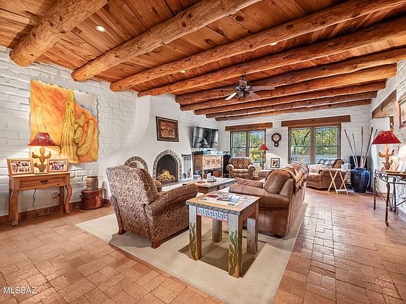 Escape to the Old West with this stunning classic Arizona mud adobe Hacienda. Nestled on 3.84 acres of pristine land surrounded by nature, this phenomenal property boasts a casita and mature mesquite trees all around. Inside the main house, you'll find 2 bedrooms and a den that exude pure Arizona charm. The natural beams, rough-sawn pine tongue and groove, natural lintels, and custom window awnings create a one-of-a-kind ambiance. The hand-painted tile-trimmed fireplace adds true Arizona ranch character to the home. With our extensive experience selling homes in Tucson, we can confidently say that this property is unmatched for pure Arizona living. Don't miss out on the opportunity to own a piece of the Old West.
