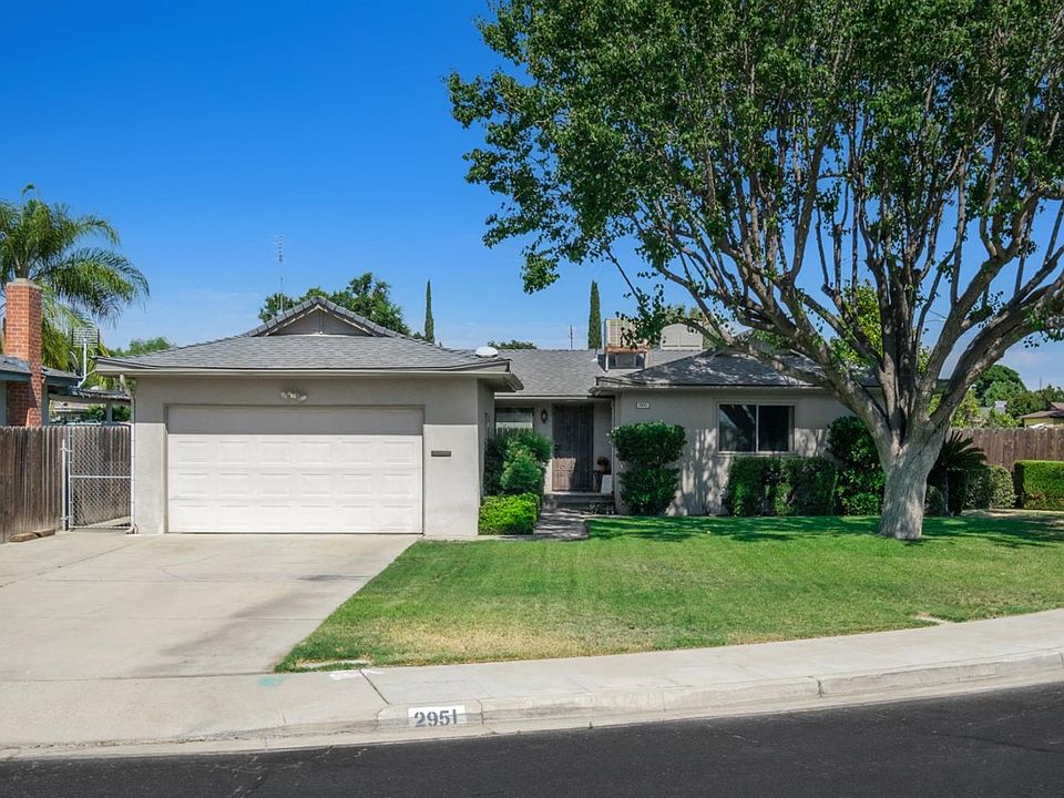 Large Lot in Clovis! This corner lot with mature landscaping also featuresRV parking with pad/electric and sewer. A covered patio and nice storage/workshop shed features the backyard with a grassy area and large side yard with your ideas in mind. This 3 bedroom 2 bath has new modernflooring and an open floor plan to the kitchen. Make your appointment toview, as we all know it will not last in this market :)