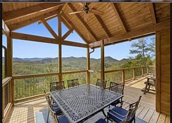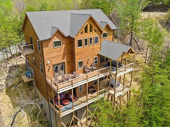 3 level cabin. 5 bedroom, 5 1/2 bars. Open living room to kitchen. Theater room and loft area. Two levels of decks and upper bedrooms have smal private decks. Spectacular views of Smoky Mountain National Park. Wooded lot provides privacy to adjacent lots.