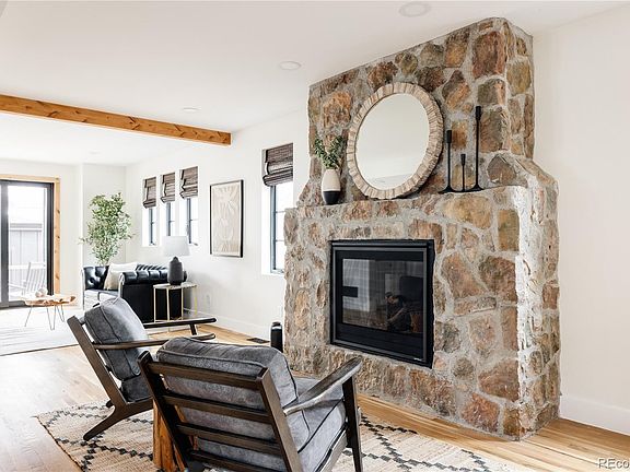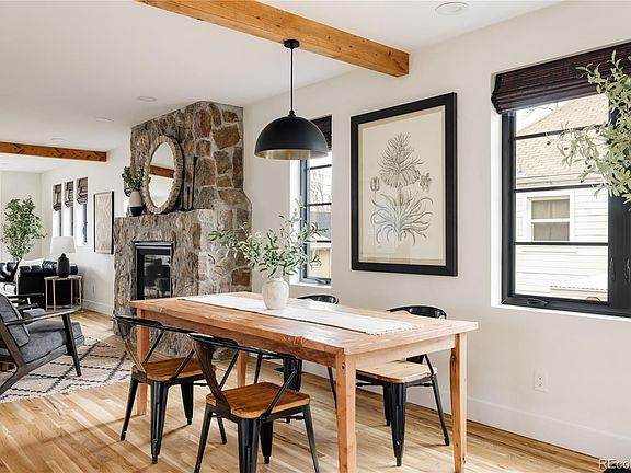 From the moment you arrive, this beautiful home draws you in with its inviting front porch, rustic charm, and thoughtful design. Step inside to sunlit spaces where oversized windows, sliding doors, and an open floor plan create a seamless flow between indoor and outdoor living. White oak floors add warmth and elegance, while custom details speak to the craftsmanship throughout. At the heart of the living room, a stunning Siena moss stone fireplace acts as both a conversation starter and a gathering place for cozy conversations. The gourmet kitchen combines functionality and beauty, featuring rustic alder accents, Brazilian granite countertops, top-tier ZLine appliances, a professional gas range, and a farmhouse sink. The spacious back deck with firepit table creates an ideal space for entertaining and enjoying the Colorado sunshine. The deck connects to the upstairs balcony via a spiral staircase for easy access. The large primary suite is a true retreat with vaulted ceilings, a private balcony to take in breathtaking mountain sunsets, and an ensuite spa-inspired bathroom featuring onyx marble tile and a freestanding soaking tub. Two additional well-appointed bedrooms and a full bath complete the upstairs. Downstairs, the spacious basement includes two oversized bedrooms, ideal for family or guests, along with a ¾ bath for added comfort and convenience. With high ceilings and flexible living areas, the basement offers ample space to relax and entertain. Nestled in the heart of South Denver, this home offers unbeatable access to some of the city’s most vibrant areas. Located near Platt Park, Wash Park, and South Broadway, and immediately across from Bates Park, you’ll enjoy proximity to local shops, restaurants, and the best farmers market in the state. With easy access to the foothills, Red Rocks, and the mountains via I-285, you’re perfectly positioned for all the outdoor adventures Colorado has to offer.