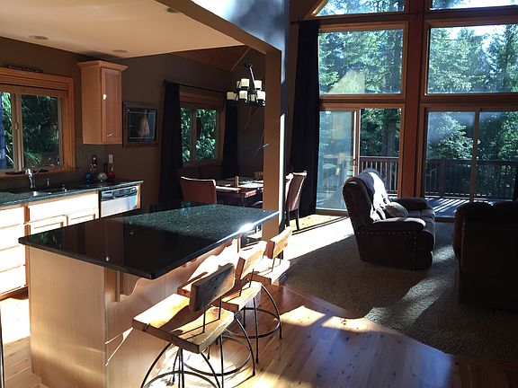 Stunning Cedar home. Custom. 550 square foot wrap around deck. Hot tub. Ultra high tongue and groove ceilings. Loft. Extra large double garage. Plowed road. Two water heaters. Stunning home.