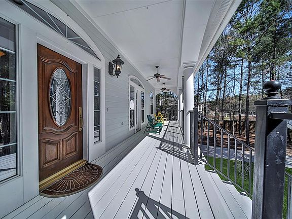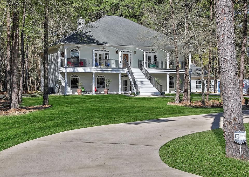 Southern Plantation style estate type home sitting on 1.59 AC in The Commons of Lake Houston. This home features gorgeous stair cases inside and outside the home with the main living areas on the second floor with spectacular views all around! The covered porches in the front and rear of the home are a highlights year round for daily views of the abundant wildlife and your personal enjoyment . Views from every room upstairs! Formal dining room and music room; open family room with stone fireplace; chef's dream kitchen; spacious master suite with access to back porch as well as spa like master bath and walk in closet; Bedroom #2 upstairs as well as study with back porch access/views; downstairs features a second master suite with private full bath; full kitchen; 2nd living room and 4th bedroom; 1000 SF detached garage/workshop is perfect for all your projects; wooded back yard; private neighborhood boat access, parks and pool area for residents. MAKE SURE TO WATCH THE MATTERPORT TOUR