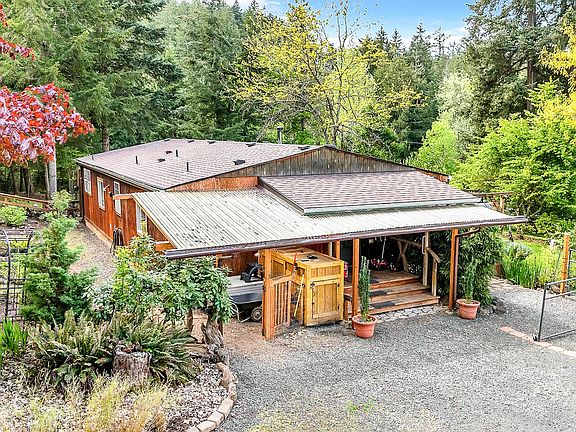 Welcome to 29510 Simmons Rd, Eugene, OR a serene retreat nestled on 1.61 private acres. This remodeled 1988 manufactured home, updated in 2000, boasts 1,296 sqft of comfortable living space. Offering 3 spacious bedrooms an office and 2 bathrooms, is perfect for those seeking peace and natural beauty. The gently sloping property is a gardener's dream, featuring a vibrant vegetable garden, strawberries, blueberries, and fruit trees and more. The landscape is meticulously maintained, with fenced sections including a dedicated chicken or dog run. Surrounded by lush, healthy maintained trees, this private sanctuary is perfect for those who value space and self-sufficiency. Come and experience the blend of tranquility and practical amenities that await at this lovely countryside escape.