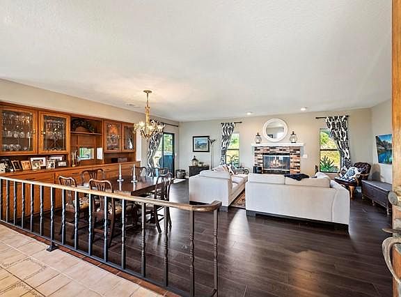 Secluded Single Story Hacienda Style home with panoramic views to the west. This property sits on 5 and a half acres and is zoned for horses and agriculture. There are 3 beautiful brick fireplaces that are wood burning, vaulted ceilings, new appliances, new flooring in the living room and bedrooms, windows were replaced on the west side of the home, all brand new fresh paint inside, new stucco outside and freshly painted, along with the whole roof being redone a few years ago.( 8 year warranty still on the roof) There are 3 bedrooms and 2 bath, a huge family room, dining room combo, a country kitchen and a breakfast nook and a family room that is an open floor plan goes out to a private patio with a fountain and BBQ area. The electrical pole next to the home has an industrial converter power unit that brings 200 amps through the home into the detached Oversized 3 car garage and workshop. There is a covered RV space and two other areas to keep your multiple RV's, trailers and toys. There is a 1 1/2 inch water meter on the property, propane, and a septic field off out the back side area. Valley Center school district, and a short drive to the casinos and wineries, shopping and many restaurants. Just up the hill is Palomar Mountain Resort with snow sledding in the winter and small country charm, hiking during the summer months.