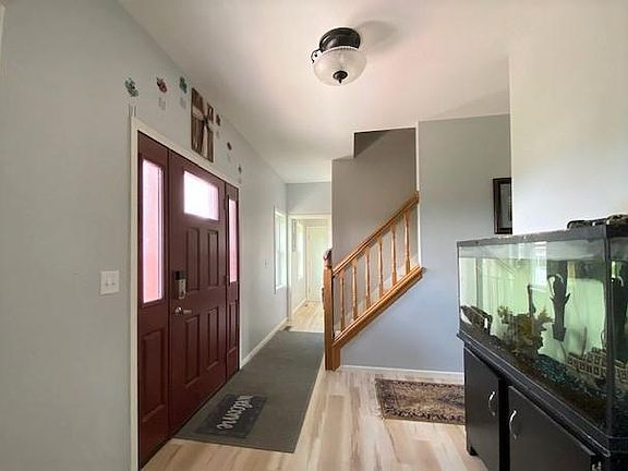 Home has a three-car insulated & heated attached garage & 30x50 insulated & heated pole building with water and a fenced area for the animals. Private view of the wildlife can be seen from the deck off of the family room or at the walkout on the lower level.