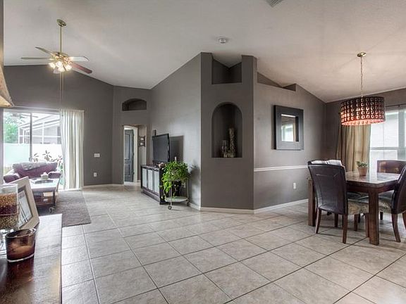 This beautiful and well maintained home in the centrally located community of Meadow Pointe I features many updates & upgrades! As you walk into the home you will be amazed at the soaring ceilings, natural light and open floor plan. The gorgeous kitchen was recently updated and features 42" wood cabinets, granite countertops, and stainless steel appliances. The spacious master suite features a newly remodeled bathroom with walk - in shower, garden tub, and dual vanities. The second bathroom has also been beautifully remodeled. The sliding glass doors in the living room lead out to the covered lanai and fenced -in yard. Other updates include roof & AC. Meadow Pointe I features great amenities such as a community pool, playground, basketball courts, and more but with a low CDD fee and optional HOA! This home is located near 75, Shops at Wiregrass, the new outlets, and many restaurants and shops. Make your appointment today to view this gorgeous home!