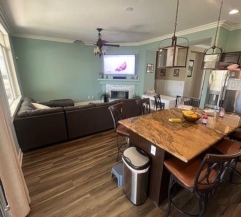 Welcome to Your Dream Home in North Shore, Lake Elsinore! Experience the charm and elegance of this turnkey single-story home, boasting 4 spacious bedrooms and 2 modern bathrooms. Nestled in the desirable community of North Shore, this stunning property offers 2000 square feet of beautifully designed living space with an inviting open feel. - **Elegant Interior Step onto the gorgeous hardwood flooring that flows throughout the home, complemented by exquisite crown moulding and carpeted bedrooms. - **Spacious Layout The formal room and dining room greet you at the entrance. - **Gourmet Kitchen The heart of the home, the kitchen, features a large center island perfect for casual dining, upgraded granite countertops, and an elegant tile backsplash. The open layout seamlessly connects the kitchen to the living room, where a cozy fireplace awaits. - **Luxurious Master Suite Retreat to the master bathroom, complete with dual sinks, an upgraded vanity, and a spacious walk-in closet. Each of the carpeted bedrooms offers ample space and comfort. - **Modern Amenities Enjoy the convenience of an individual laundry room, a newly replaced HVAC system, and an EV car charger in the garage. **Outdoor Paradise - **Entertainment Ready The expansive outdoor patio features a large Alumawood patio cover with ceiling fans, providing plenty of shade for those warm summer days. - **Perfect for Gatherings The backyard is an entertainer's dream, complete with a gas fire pit, ideal for hosting friends and family. - **Prime Location Minutes away from the 15 freeway, with easy access to schools and nearby shopping. Don't miss the chance to make this exceptional home yours. Schedule a viewing today and experience the perfect blend of luxury and comfort! Initial lease is for 12 months. After initial lease all parties will consider renewing the lease annually. Owner pays for gardening service.