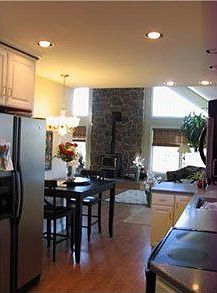 JUST MINUTES FROM TOWN THIS HOME HAS CUSTOM APPLIANCED KITCHEN W/CORIAN COUNTER TOPS AND 42 CABINETRY. WOODBURNING STOVE, VAULTED CEILINGS, LOFT BEDROOM. GREAT POND WITH A DOCK AND A STREAM THAT RUNS THRU THE PROPERTY. 12 X 40 DECK. 1 YR AHS HOME WARRANTY INCLUDED.