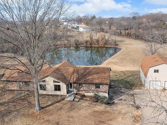Rare Opportunity Awaits! This sprawling 2926 sq ft ranch features a divided bedroom floor plan with a master suite and 3 additional bedrooms. The great room is an impressive 39x24 and highlighted by a cathedral ceiling and a charming wood-burning fireplace, creating the perfect setting for gatherings. The spacious kitchen has numerous cabinets, plenty of counter space and the main floor laundry is conveniently located adjacent to it. You will enjoy dining in the breakfast room that overlooks the picturesque lake. The master bedroom suite has a whirlpool tub and a seperate shower with 2 shower heads and a walkin closet. Should you desire more space, the lower level offers a partially finished area, allowing for flexibility. The 2-car garage includes a loft area for potential studio or office and an unfinished room behind the garage. Situated on 4.99+/- acres with a stocked lake, this property offers a perfect blend of space and natural beauty! (Back deck is being sold as is.)