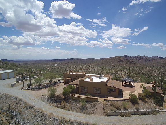 Take in 49 acres of desert wilderness from your private home sanctuary with the Tonto National Forest as a neighbor. This 2,000 + sq ft home is just the place to watch the sunset over the Superstition Mountains or rise just behind Picket Post. You have 360 views, on one level, with split primary suites (walk in closets) on each side of the home. Plus there is a casita next to what is currently a covered pool deck and room to entertain. You have a three door RV sized pole barn, with room to have your workshop and park all of your desert toys. With 49.92 acres there is potential to subdivide the land. The home is on shared private drive with cameras/alarms, please respect privacy. Roof had a full update in 2021.