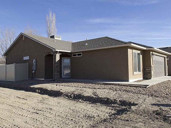 For Showings contact Jennifer Cirka at Greyhound Realty 970-270-5757 Beautiful new home with 1418 sq. ft. 3 bdrms, 2 bath, double garage with opener. Great room, large kitchen with granite counter tops, huge island, stainless steel appliances, top of the line cabinets, and a huge pantry. All appliances stay even washer/dryer. Large walkin closet and double sinks in master with large shower. Tile floor in baths, carpet in bedrooms, beautiful high end flooring in kitchen and great room. Vaulted ceilings throughout give this home special appeal and warmth. Still under builders warranty. Low HOA of $140 a year. One of the biggest lots in subdivision with fenced backyard on quiet end of street.