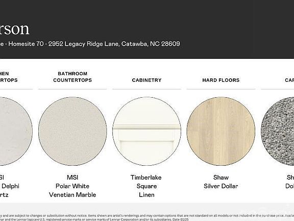 This new two-story Emerson floorplan features an airy layout among a first-floor kitchen with a large center island, breakfast room and family room that’s fit for modern times. The spacious owner’s suite enjoys privacy on the main floor. Upstairs are a versatile loft and four secondary bedrooms, three with walk-in closets. Plus, our signature Everything's Included program means you will get quartz or granite kitchen countertops, stainless steel appliances, luxury vinyl plank flooring, and so much more at no extra cost! Legacy Ridge, located in Catawba, offers convenient access to Hwy 16, Hickory, Charlotte Douglas Airport, Lake Norman, Shoals Lake and 45 minutes to Uptown Charlotte. Downtown Catawba is just a short drive away, where there is ample shopping, dining and retail opportunities. Future amenities include pool, cabana, and playground.