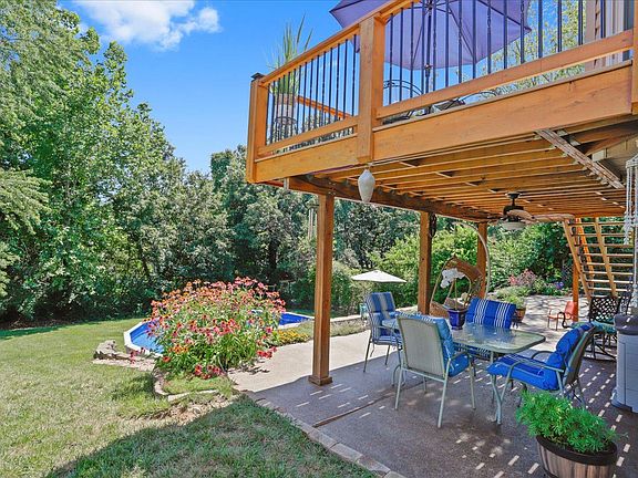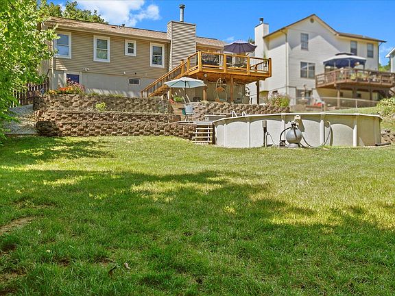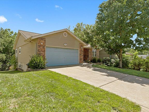 FOX C-6 SCHOOL DIST. Conveniently located in the heart of Arnold. Enter into the foyer and you'll immediately notice the refinished hardwood floors,vaulted ceilings with eye catching architectural cut outs, and a cozy woodburning fireplace.The spacious breakfast room (big enough for a 6 chair table) allows you to enjoy the view through the bay windows as you enjoy your meals, and the breakfast bar allows for even more seating, and even more seating on the composite deck that overlooks the pool.Kitchen offers LOTS of cabinets,and pantry. Primary bedroom suite has a large walk-in closet and spacious bath with a walk-in shower. Open, finished staircase leads to lower level where you'll find another full bath, laundry, storage room, sleeping room and yet, still lots of unfinished area for future living space. Walk-out from basement leads to a huge patio that is partially covered and overlooks the yard and pool.This home is perfect for entertaining and a staycation. Open House Sun. 1-3 pm