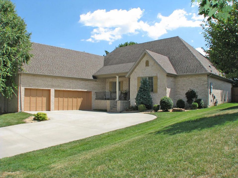2952 W. Cantebury, Springfield, MO. Stunning all brick home featuring 4 bedrooms on the main level plus large bonus room upstairs. All new interior paint in 2014, new built-in bookcases in living room, new California closets in 2014, new pantry and new heating and air in bonus room. Very open kitchen/hearth room with granite with hardwood floors plus covered patio with 2nd fireplace and privacy fenced backyard. Home shows great!!!