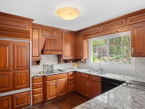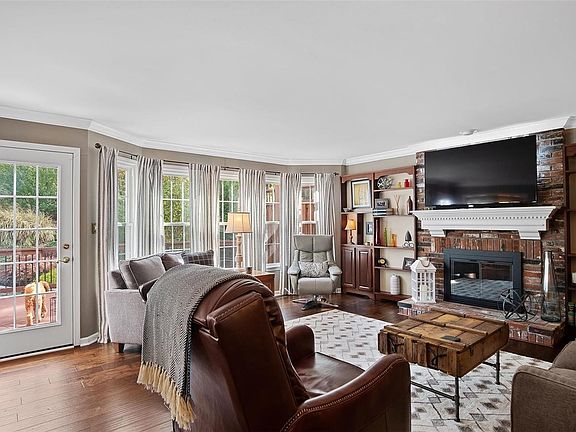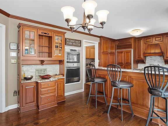 Stunning 2 story located on an exquisite lot backing to trees...Hurry this won't last! Step inside to porcelain tile flooring in the foyer, formal dining room & office with built in custom cabinetry/shelving and crown molding. You'll love the beautiful hickory hand scraped floors throughout the main level. Cozy family room offers a bay window & gas fireplace flanked with custom shelving. The kitchen features granite counters, tile backsplash, double ovens, built in Sub- Zero refrigerator, custom butler's pantry & bay window. You'll love the Master Bedroom Suite with soaring vaulted ceilings, walk in closet, vaulted luxurious Master Bath has new mirrors, flooring & fixtures. There are 3 additional bedrooms & full bath on the second level. Entertainers delight on the the outside deck overlooking the backyard with mature trees & professional landscaping. The finished lower level offers rec room, dry bar & plenty of storage. Other features include Roof 2020, Alarm System, Central Vac