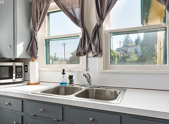100 year old cottage with river & bridge views. 3 bedrooms and 1 remodeled bath. Kitchen recently painted in designer colors. Small eat-in area plus a dining room. Home sits on 0.73 acres and has a large treed back yard. Trails through the trees and lots of relaxing spots to sit in the shade.Large level side yard.Tiered backyard with access to the shop over the oversize garage, great rec rm or hobby area or both!