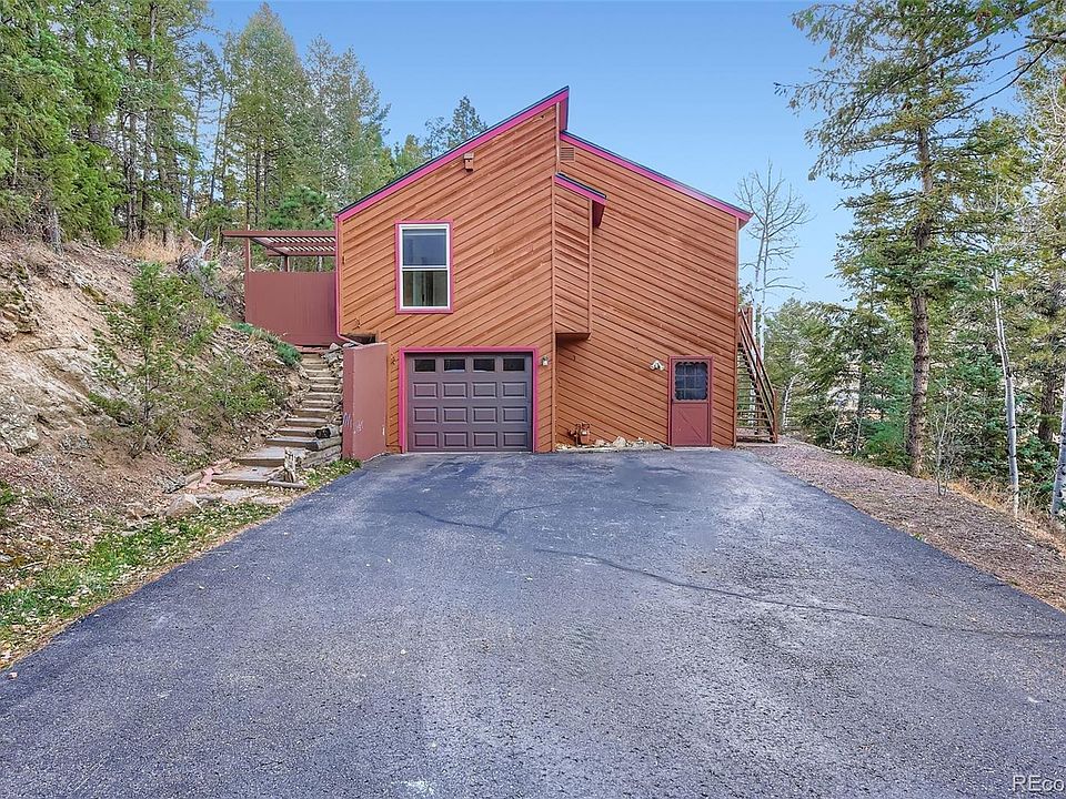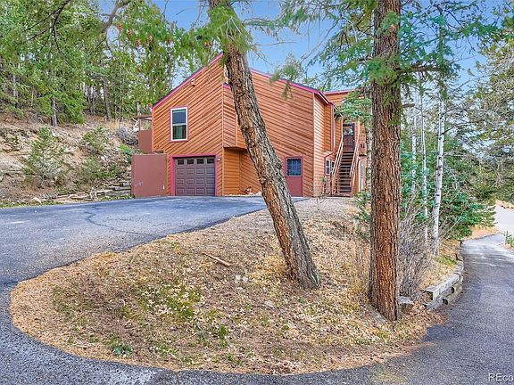 Make this gorgeous mountain home yours! Enjoy the serene peacefulness of country living and the convenience of easy access to everything you need! Just 6 minutes to quaint Evergreen with restaurants, shopping, & trails enroute. 8 min to Bergen Park. Easy access to schools. Hop on I-70 to go ski, camp, or hike; or to Denver for work or play. World-famous Red Rocks Amphitheatre is just 18 minutes away! Visit nearby Evergreen Lake to fish, hike or jog around, or ice skate in the winter! Elk Meadow is just across the road for hiking/biking. There is no traffic on Bronco Rd. Like horses? Lucky you! Aptly named Bronco Rd is home to the Evergreen Rodeo grounds. Indoors: the vaulted ceilings and open floor plan feel grand and lofty, and yet the home is cozy with 2 FPs! Enjoy meal prep on expansive granite countertops and serve it up to family and friends in the inviting dining room. Doing the dishes is more fun when you can watch chippies and birds and other wildlife just outside the window. The wrap-around deck provides that "indoor-outdoor" lifestyle that Colorado is famous for. There are 3 bedrooms and 2 full bathrooms, plus laundry on the main level. The primary suite has brand new carpet, an attached full bath, & a sliding door for private access to the secluded hot tub area. With no neighbors and a sloped, wooded hillside on undeveloped land behind, the privacy and serenity of this home is unsurpassed! Downstairs there's much more to love... A large den with the second stone fireplace, many windows and a separate entry door make this level almost feel like a downstairs apartment. There's a fourth bedroom, 3/4 bathroom and a cool flex space that could work as a craft room, home office, music studio, game space, yoga room, workout space and so much more. Carpet and paint downstairs was new in 2024. The attached one-car garage is handy for winter parking, and the outdoor shed gives the extra storage everyone needs! Hurry! This one won't last!
