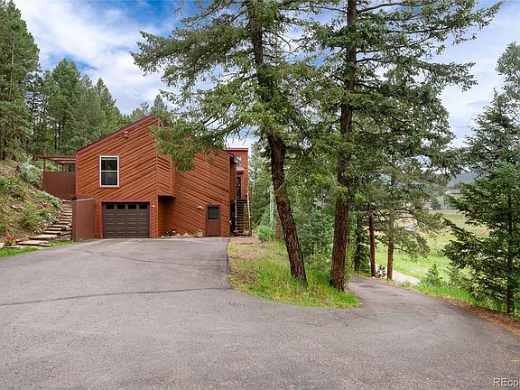 Mountain Living at its BEST! Close to conveniences, yet a world away in an oasis nestled in the pines. El Pinal is sought after for its accessibility to EVERYTHING. Head out of your neighborhood & hop onto Hwy 74. Turn north-it’s only a few minutes to I-70 or go south to enjoy the quintessential shops & eateries in downtown Evergreen. Elk Meadow is just across the road for hiking/biking. Echo mountain—a mere 25 minute drive to be on the slopes! Enjoy the lake all year from fishing to ice skating/hockey. As you head home, turn onto the secluded dead-end street at the base of the Rodeo grounds. The private driveway on the side of a hill welcomes you into peaceful surroundings where the hustle & bustle can be left behind. Step into the grand living area w/ vaulted ceilings & tons of natural light. The stone fireplace will keep you warm on winter nights & opens to the dining area w/ a turn into the updated kitchen that has vaulted ceilings & plenty of prep space on granite counters. A beautiful view of the mountainside as you do the dishes. Step out onto the wrap around deck—so many different nooks to enjoy the sunrise or sunset. The primary suite has a sliding door for easy access to wake up & step out to enjoy your jacuzzi hot tub year round in the privacy of your secluded lot that backs to private undeveloped acreage. There are three bedrooms upstairs as well as two bathrooms & laundry. Head downstairs to find another stone fireplace in the family room—perfect for a home theater or cozy reading area. There is a 3/4 bath and two more bedrooms downstairs, one with an open wall w/ counter area that could be used as a bar or set up as a home gym/office space. New carpet and paint keeps the lower area feeling fresh. The attached garage will keep your car out of the elements & has an extended work area w/ shelving and storage. Additionally, there is a storage shed & extra parking near the driveway. This inviting mountain retreat is sure to please & won’t last long!