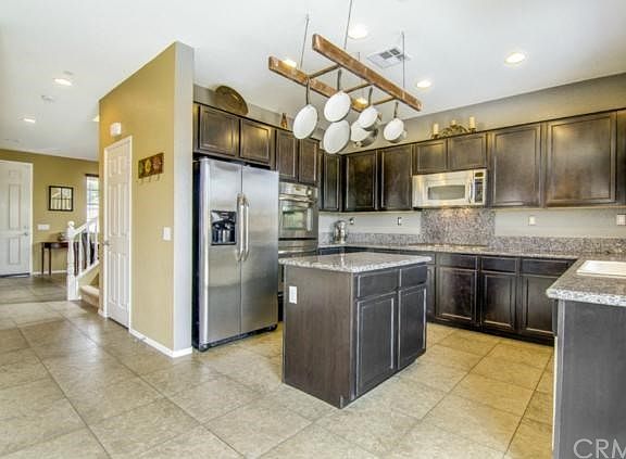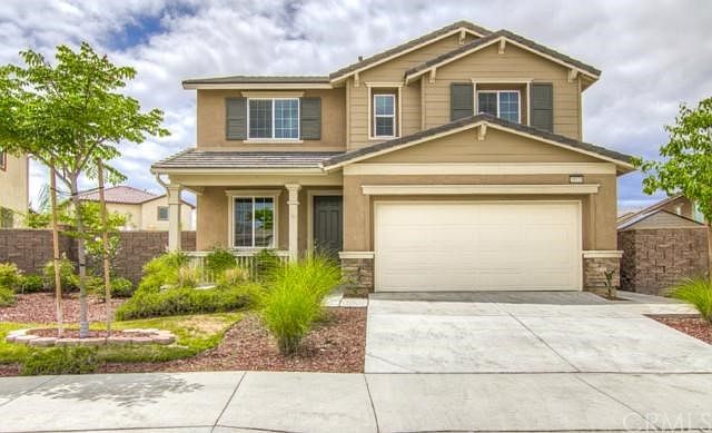 Beautiful 2 story home in the Baseball District at Summerly built by Richmond American Homes. From the front porch, you are invited to a dining room that can be used as a living room. Down the hall, you walk into a gourmet kitchen with granite counter tops, stainless steel appliances, double ovens, 5 burner gas cook-top, and an island. Kitchen opens to the large family room with laminate wood floors. Going upstairs, you will find a cozy loft/bonus room, 2 bedrooms (one with laminate wood floors), main hallway bathroom, laundry room, and a large master bedroom with a walk-in closet. Master bathroom has dual sinks, and separate shower and tub. Huge backyard with custom concrete patio and walkways, gazebo, and covered bar with built-in bbq which includes sink and a refrigerator is perfect for entertaining. 2 car garage with epoxy floors has plenty of room for storage. Did I mention that this home is equipped with 6 solar panels that will save you money on your electricity bill??!! A true "move-in" ready home! Summerly is a master planned community that features a swim club, and park with kid's splash zone. Located across the street from Storm Stadium, 18 hole golf course, and is very close to shopping, restaurants, entertainment, and 15 FWY!!!