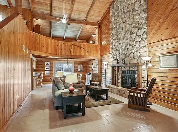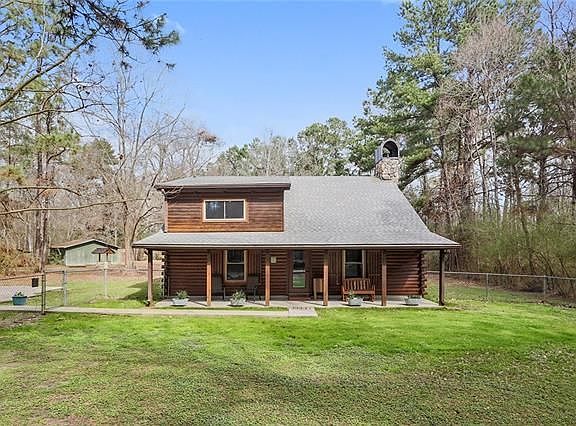 PRIVATE AND PEACEFUL BUT ONLY MINUTES FROM THE INTERSTATE! CYPRESS WALLS, CEILINGS AND KITCHEN CABINETS. ALL NEW STAINLESS STEEL APPLIANCES. SELLER HAS BAD ANKLE AND CAN'T KEEP UP 5 ACRES ANYMORE. PERFECT FOR LARGE FAMILY AND LOTS OF ROOM FOR HORSES TOO!! BARN, KENNEL, GREENHOUSE, POND AND MUCH MORE!!