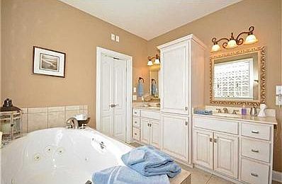 - Master Bedroom Description: Bedroom, Split, Sinks Double, Closet Walk in, Tub Whirlpool, Shower Stall Full