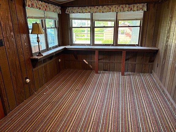 Step into a spacious enclosed front porch adorned with marble sills—perfect for flower displays or a morning coffee spot. The kitchen is ideally sized and opens to a generous dining/living room combination via a cozy snack bar. A centrally located bedroom provides ample closet space, while the full bathroom features a walk-in shower for easy access. The home has instant water heater. A bonus room adds to the home's unique character, featuring exposed wooden beams and a delightful corner loft bedroom—ideal for guests or a creative retreat. The entire south side of the home is lined with large windows, flooding the space with natural light and offering panoramic views of Lake Paradise.