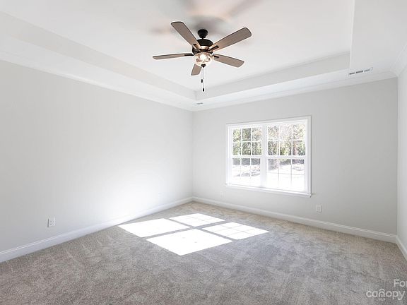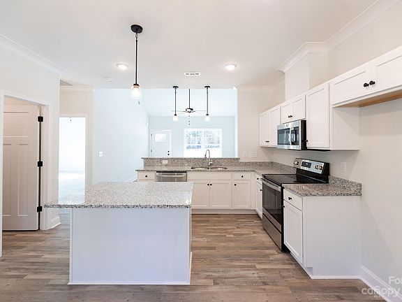 Newly constructed home available now in the Clover area on a large 2+ acre lot. This single story floor plan is located in a quiet, rural area on a low-traffic road. Large wooded lot and no HOA! The home features a granite countertop kitchen with white shaker cabinets. Spacious pantry area! The open floor plan connects the kitchen to the large living room, which has a vaulted ceiling. Off of the dining area is a covered back porch; perfect for a private afternoon retreat. The primary bedroom features a large walk-in closet and private bathroom, also with granite countertops. An enclosed laundry room adjoins the kitchen and dining area. Stylish exterior with vertical board and batten siding on the front. Private well and septic system. Energy efficient heat pump with high (14 Seer) efficiency rating. Seller financing available with minimum 10% down. Best rate of 7.95% with 20% down.