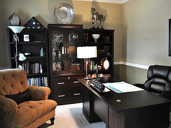 Impressive Two story modern open design blending the custom kitchen amenities including new granite, stainless appliances, center island, and hardwoods flowing to the soaring great room lofting ceilings and bright windows surrounding a cozy fireplace. Main floor bedroom utilized as one of two private home offices. Huge master suite with ample space for sitting area. Backyard tree line offers ample separation from neighbors. Finished basement. Includes 3 car garage and lawn sprinkler system.