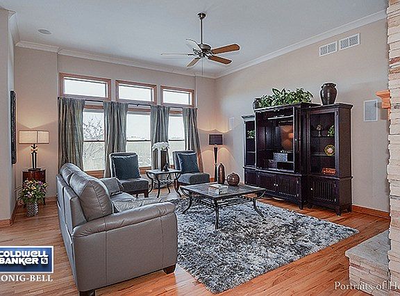 Stunning 5 bedroom semi-custom home provides a spacious, open floor plan~Wonderful architectural elements include tray ceilings, volume/vaulted ceilings, stacked crown molding, contoured corners, wide trim, arched doorways, transom windows & skylights~1st floor offers beautiful hardwood flooring & 11' ceilings~Large 5th bedroom located on 1st floor (currently being used as a home office)~Fabulous gourmet kitchen w/gorgeous granite counter tops, glass/tile back splash, 42" birch cabinetry & SS Kitchenaid appliances~Elegant master suite features gas fireplace, sitting room, custom walk-in closet & built-ins~Luxury master bath w/dual vanities, jetted tub & separate walk-in shower~Energy efficient home w/dual, zoned heat & AC~Deep poured basement w/9' ceiling & RI for addt' bath~Entertain family & friends in your private courtyard w/wood burning fireplace & outdoor speakers~There is also a tiered Deck w/hot tub~Community clubhouse w/p