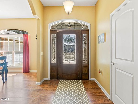 Welcome to the epitome of rural charm! This brick house, nestled on a sprawling 5-acre lot, is a sanctuary of comfort and sophistication. From the moment you step through the door, you'll be captivated by the thoughtful design and luxurious features that define this home. The formal dining room sets the stage for memorable gatherings, providing a perfect setting for hosting friends and family. The heart of the home unfolds in the open concept living and kitchen area, featuring stainless steel appliances, granite countertops, a breakfast bar, pantry and a cozy breakfast nook. The split floor plan enhances privacy, with the spacious master bedroom serving as a true retreat boasting an en suite bath complete with his and her walk-in closets, double sinks, a jetted tub, and a separate shower. Convenience meets functionality with direct access to the laundry room, streamlining your daily routines. Step outside, where a covered back porch invites you to unwind and enjoy the beauty of the fenced backyard. The tranquility of the outdoors extends to a fishpond, creating a serene backdrop for relaxation. Other outdoor features include an attached 2-car garage, large concrete parking pad and a 48x32 open pole barn for those seeking additional space for projects or equipment. Home is located minutes from Hwy 77, Hwy 79 and approximately 35 minutes to ''The World's most beautiful beaches''.